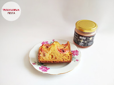 2 jaja40ml oleju rzepakowego60ml miodu z maliną70g mąki ryżowej70g mąki kukurydzianej5g proszku do pieczenia100g jogurtu greckiego300g śliwek bez pestekSposób przygotowania:Jaja utrzeć z miodem na puszystą