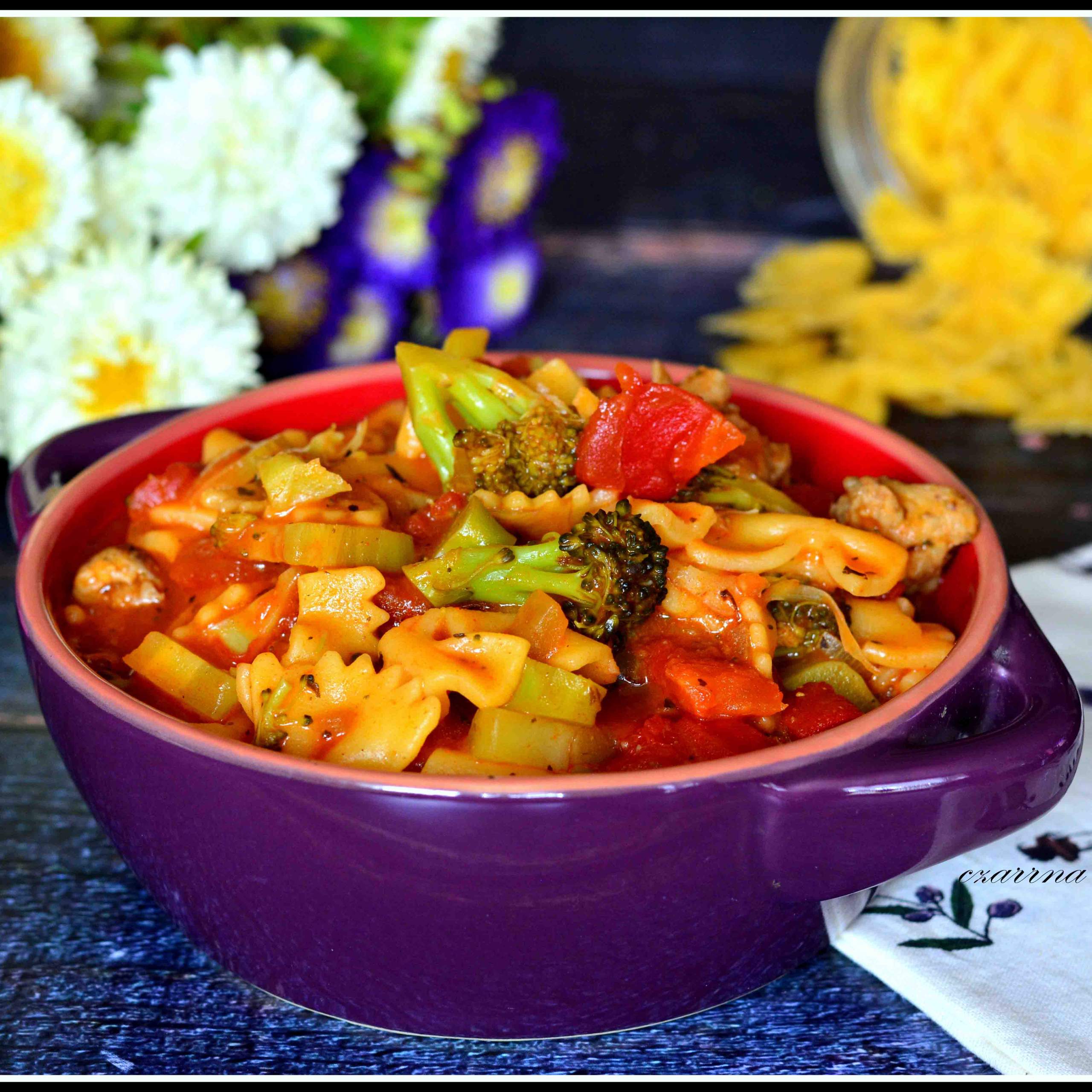 Składniki: 150 g makaronu 2 białe kiełbasy 300 g brokułu 1 cebula 1 puszka krojonych pomidorów 2 ząbki czosnku 1/2 szklanki białego wina sól, pieprz słodka i ostra papryka zioła … Czytaj dalej Makaron z kiełbasą ibrokułem