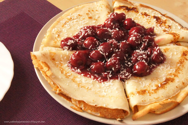 Składniki:*na naleśniki– 1/2 puszki mleka kokosowego– 2 jajka– ok, 1,5 szklanki mleka–…