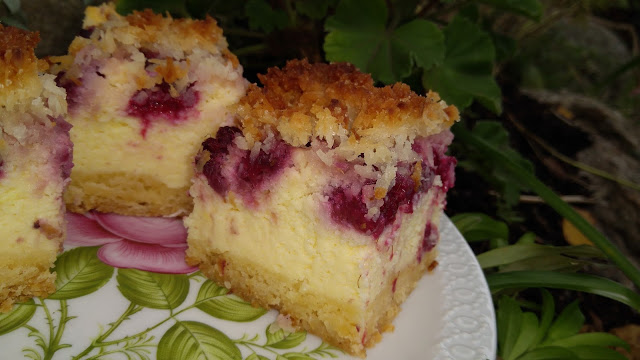 Przepyszny,wilgotny sernik z kruszonką kokosową i malinami to niebo w buzi. Ciężko…