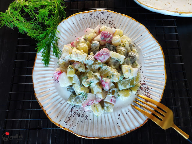Przyznam Wam, że ziemniaczaną sałatkę jadłam pierwszy raz podczas grillowania u znajomych. Bardzo mi wtedy posmakowała, więc dziś postanowiła odtworzyć jej smak sama. Jest obłędna, a do tego bardzo prosta, szybka w przygotowaniu i nie potrzeba do niej zbyt wielu składników. Choć sezon grillowy już za nami, to ja na