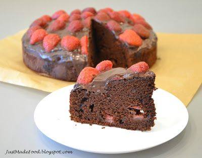 Czekoladowe ciasto z truskawkami