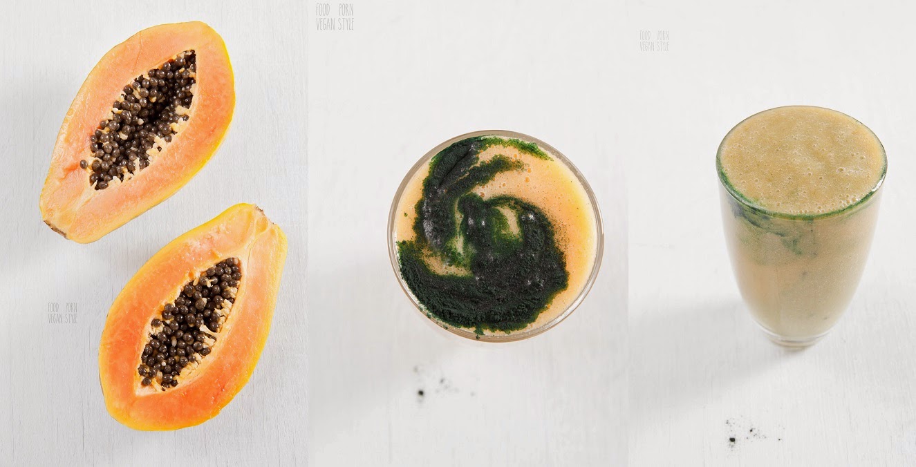papaja + spirulina + gruszka + ananas + banan