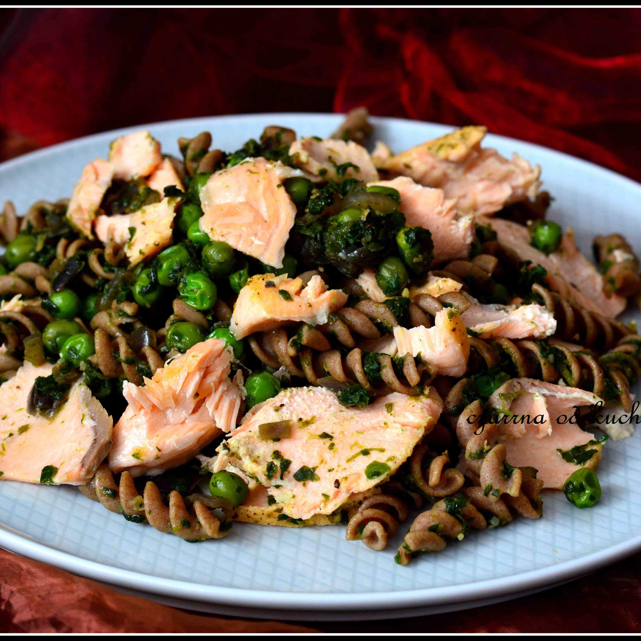 Składniki: ok. 300 g fileta z łososia 1 czerwona cebula 3 ząbki czosnku 150 g groszku mrożonego 120 g szpinaku 200 g ugotowanego makaronu pełnoziarnistego sól, pieprz przyprawa do ryb … Czytaj dalej Makaron ze szpinakiem iłososiem