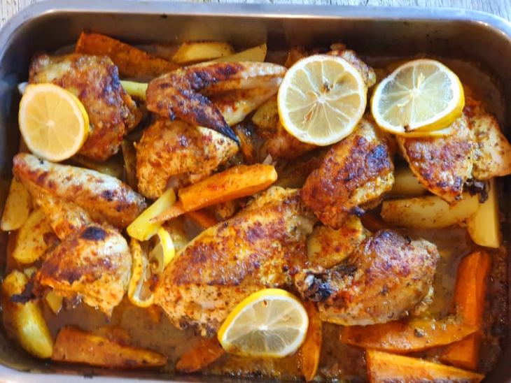 Zapiekany kurczak po grecku to wspaniały sposób na jednogarnkowe danie obiadowe. Przepis pochodzi z kanału YouTube RITA creative. Gospodyni tego kanału mieszka w Grecji i na jej kanale możecie znaleźć wspaniale przepisy. Marynata do kurczaka jest naprawdę smaczna, orzeźwiający cytrynowy smak przełamany nutka przyprawy curry. Bardzo Wam to danie polecam.