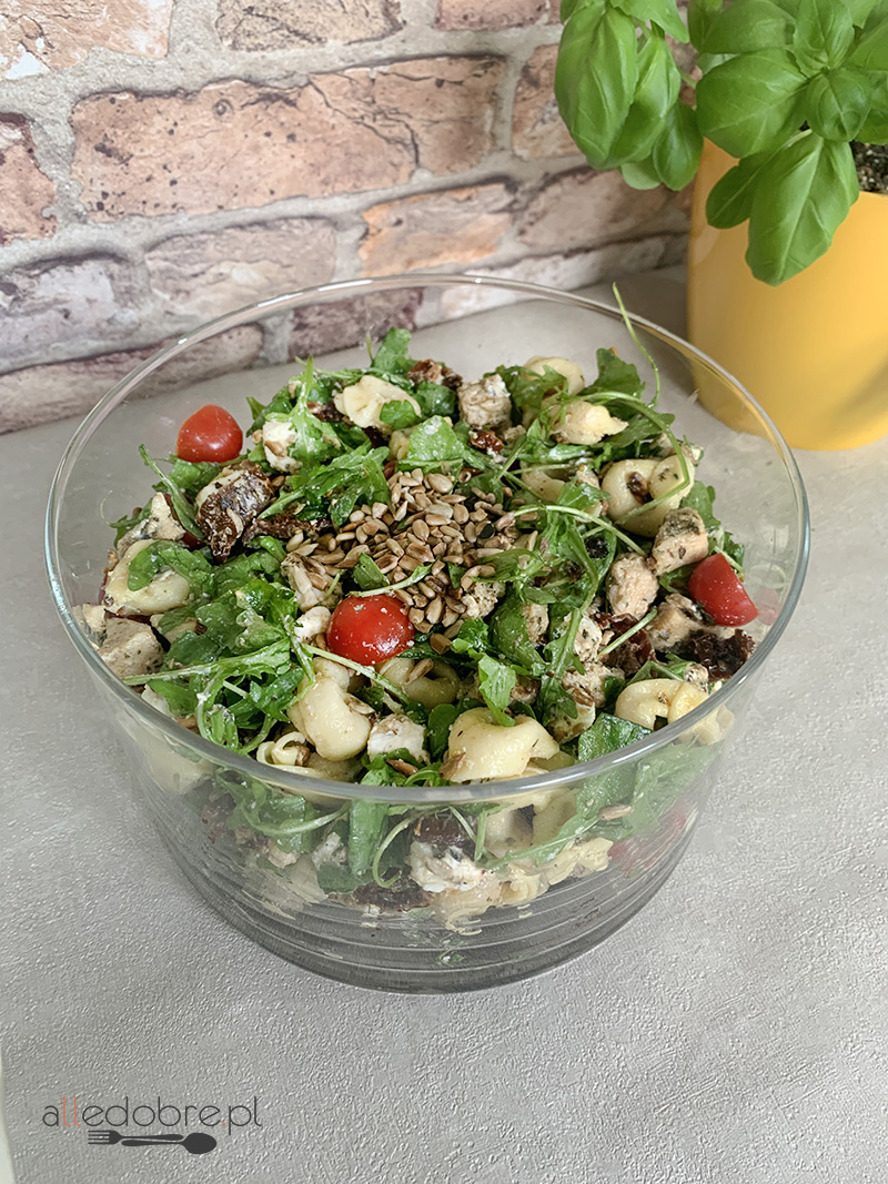 Ta pyszna sałatka z tortellini i kurczakiem poleca się na każdą okazję. Będzie idealnym wyborem na imprezowy stół, kiedy spodziewamy się gości, czy na zbliżające się święta. Możemy ją także zaserwować na obiad, czy kolację, ponieważ jest bardzo sycąca.