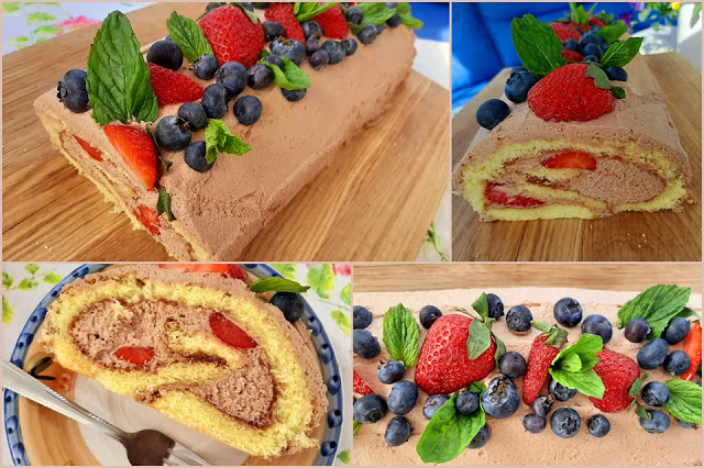 Pyszna mięciutka rolada z masą z bitej śmietany, mascarpone i nutelli, do…