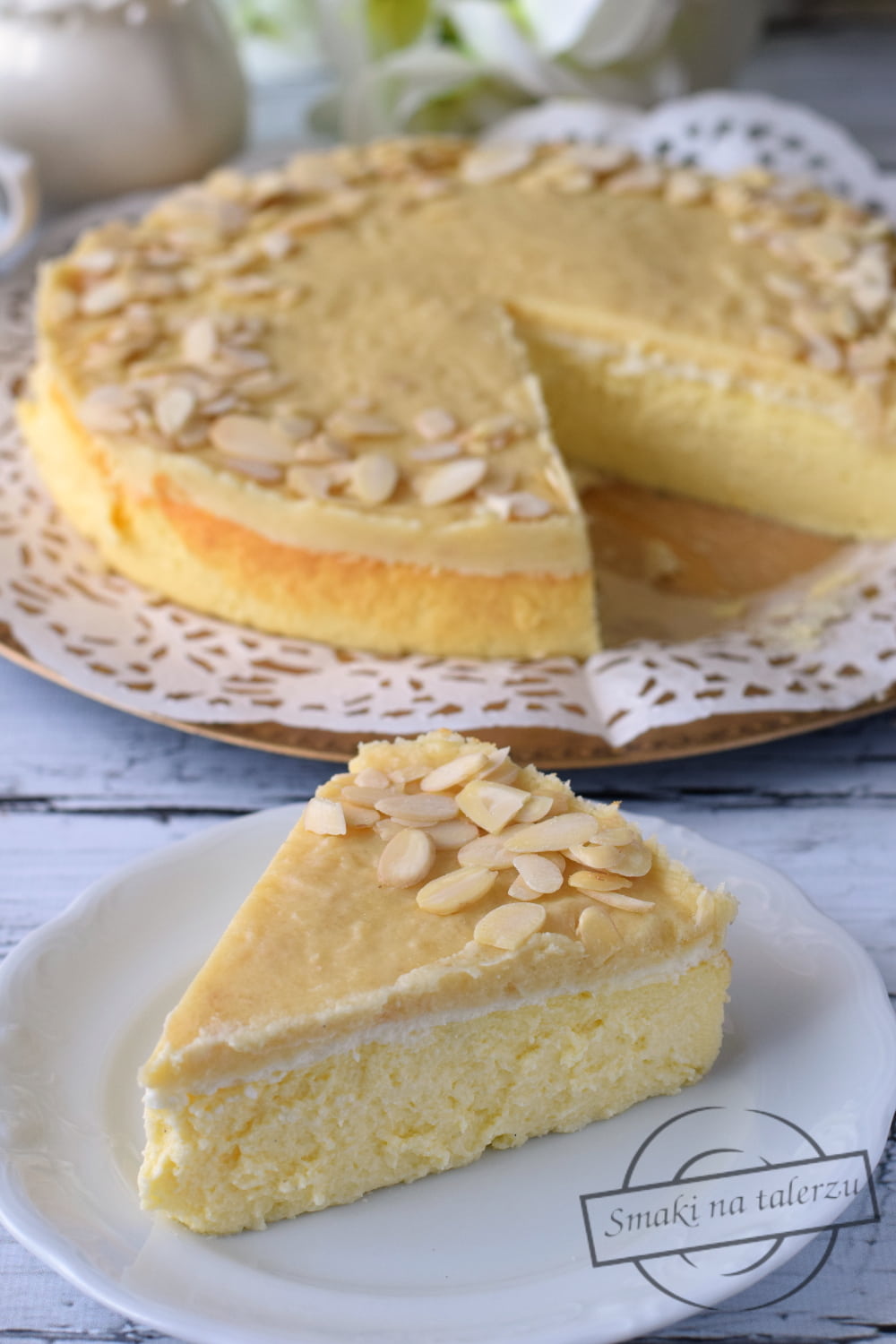 Tym razem skusiłam się na sernik z marcepanową polewą, zwłaszcza, że ową masę zakupiłam już jakiś czas temu i chciałam ją wykorzystać.
