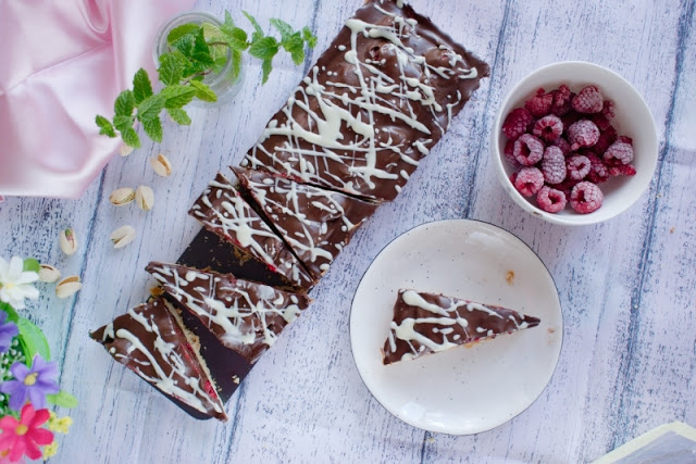 Maliny zalane czekoladą na kruchym cieście z orzechową nutą to idealny deser…