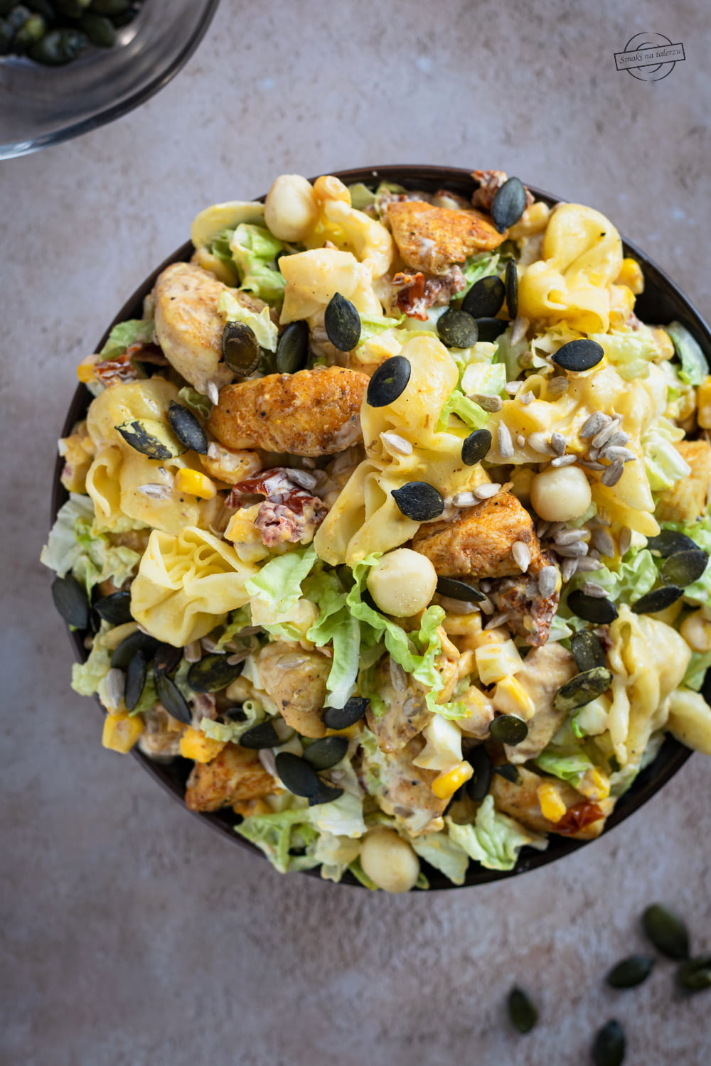 Sałatka z kurczakiem, tortellini i słonecznikiem