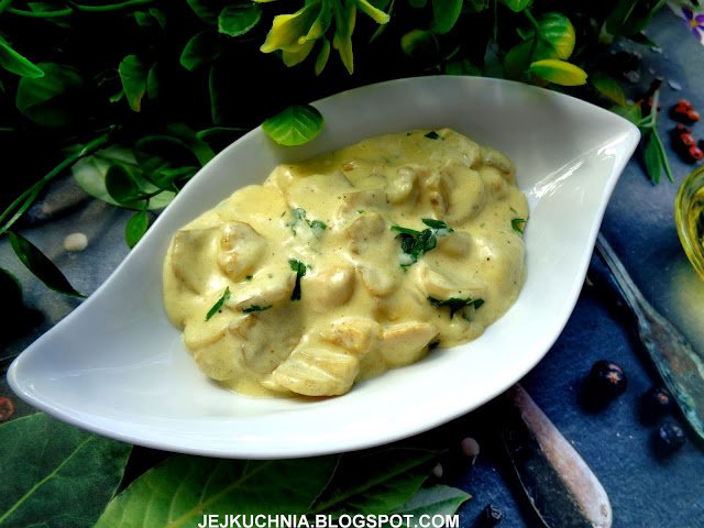 KURCZAK Z PIECZARKAMI W DELIKATNYM SOSIE ZE SŁODKĄ ŚMIETANKĄ