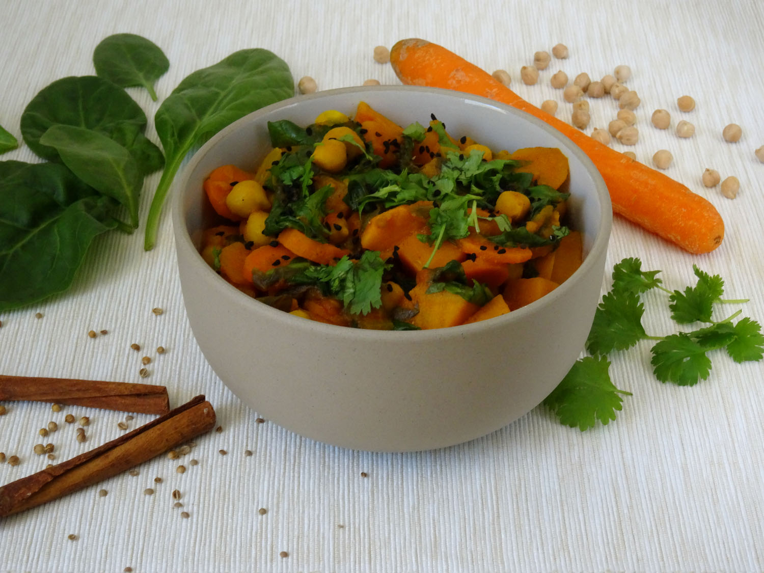 Coś dobrego nazimę – rozgrzewające, aromatyczne curry zbatatami, ciecierzycą iszpinakiem. Wpozytywnie nastrajającym…
