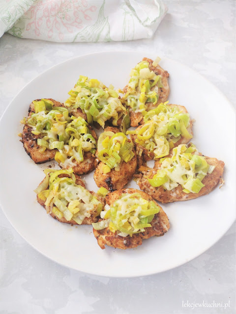 Kotleciki drobiowe z porem i żółtym serem