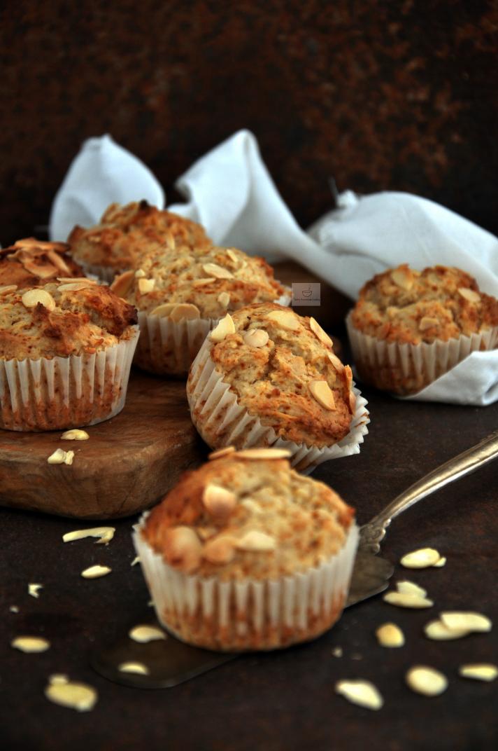Dzisiaj coś na słodko. Proste muffinki z mąki orkiszowej z dodatkiem migdałów. Nie mają w sobie jajek ani nabiału. Idealne na słodki zdrowy niedzielny deser.