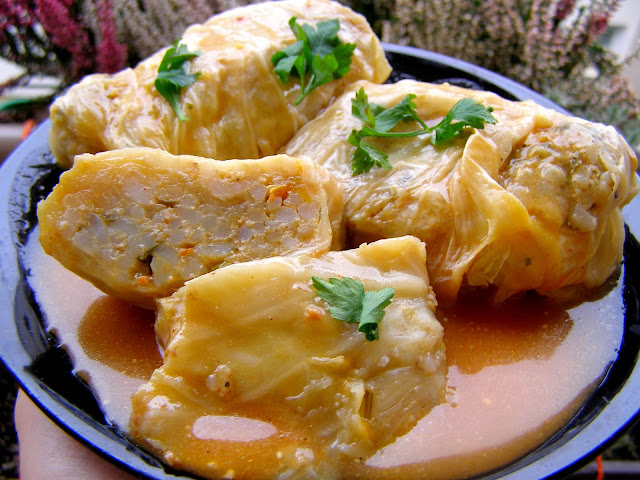 Składniki: kapusta płaska na gołąbki 2 sztuki, ryż ugotowany 3 woreczki, mielona łopatka 70 dag, cebula 1 sztuka, ząbki czosnku 4 sztuki, papryka słodka 1 łyżka, papryka ostra 2 łyżeczki, papryka 2 sztuki mniejsze, olej rzepakowy 1/2 szklanki, jajka 2 sztuki „M”, przyprawa do wieprzowiny 1 opakowanie, kucharek 2