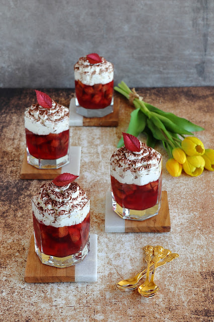 Czasami najprostsze desery są najsmaczniejsze. Jabłka, galaretka i śmietana świetnie się łączą. Upieczone z cukrem i cynamonem jabłka smakują rewelacyjnie. Polecam.