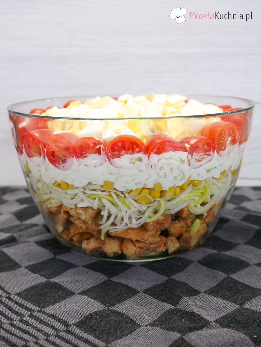 Sałatka warstwowa to doskonała propozycja na pyszną i pięknie prezentującą się sałatkę, która sprawdzi się na domowe imprezy czy inne ważne przyjęcia.