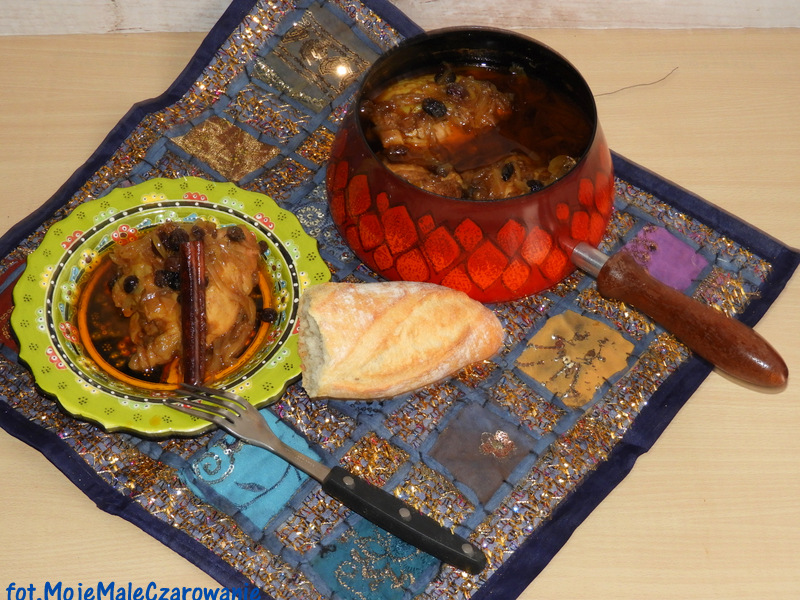Tak przyrządzony kurczak to niebo w gębie jak mawiają.Długo czekałam aż w końcu wypróbowałam pomysł na danie, które znalazłam u Sylwii ze Smaki Maroka…i nie tylko.Trochę pozmieniałam pod swoją kuchnię, nie posiadam tagine i dlatego gotowałam w tygielku.Nie miałam całego kurczaka tylko 4 duże udka.Wyszło znakomicie i dlatego polecam gorąco,