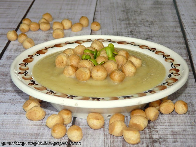 Gęsty krem czosnkowy z groszkiem ptysiowym
