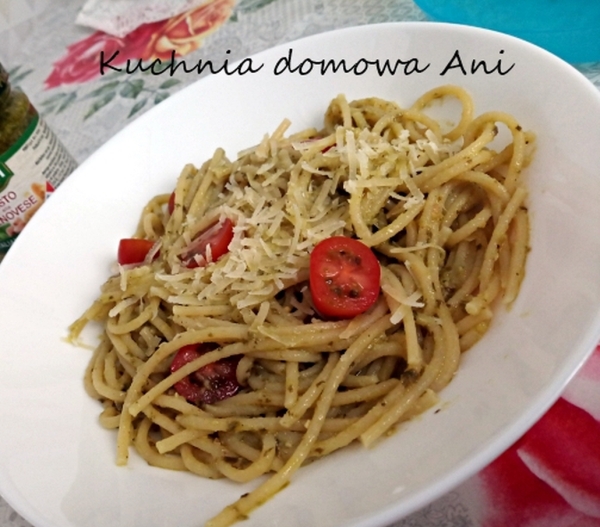 makaron spaghettizielone pesto (domowej roboty lub ulubione gotowe)