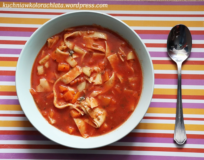 Zostało mi kilka naleśników, więc zamiast zjeść je z twarogiem lub dżemem, postanowiłam ugotować zupę pomidorową i wkroić do niej naleśniki. Smakują jak makaron. Spróbujcie też dodać naleśniki do rosołu. Tutaj znajdziecie przepis.