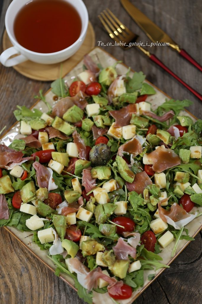 Sałatka z rukolą, szynką parmeńską i awokado.