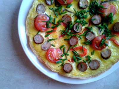 Omlet z papryką, drobiowym kabanosem i szczypiorkiem