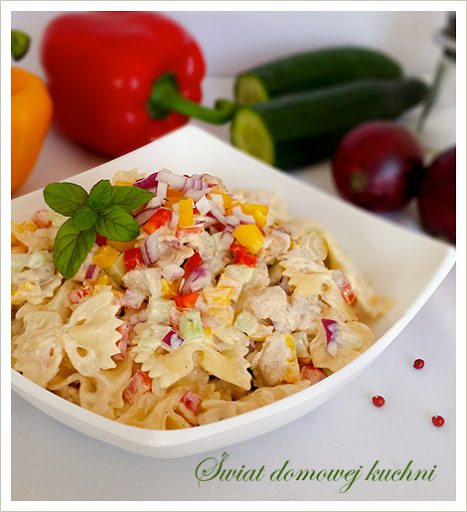 300 g piersi z kurczakaprzyprawa Gyros1/3 opakowania makaronu farfalle (kokardki)1/2 papryki zielonej1/2…