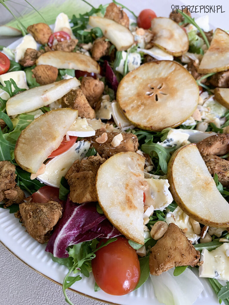 Ta wykwintna i aromatyczna sałatka z kurczakiem i pieczoną gruszką to idealny pomysł na kolację, lekki obiad czy posiłek do