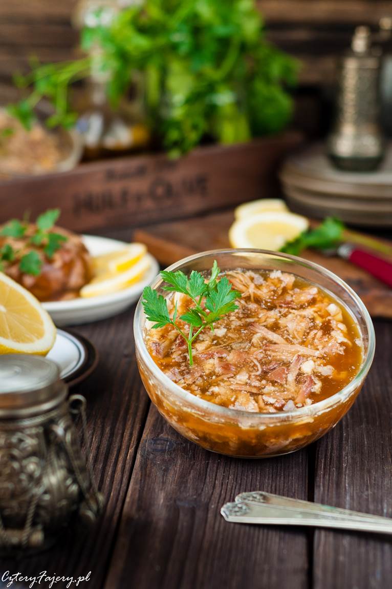 Przepis na tradycyjną galaretę wieprzową z nóżek wieprzowych i golonki.