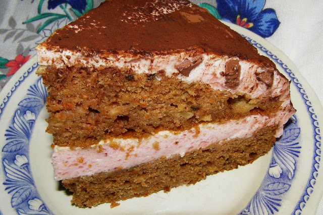 Składniki: jajka 5 sztuk „L”, cukier 1 szklanka, mąka tortowa 2,5 szklanki, proszek do pieczenia 1,5 łyżeczki, przyprawa do piernika 1 łyżka, olej rzepakowy 3/4 szklanki, marchew 3 sztuki większe, orzeszki ziemne 100 gram, jabłka 2 sztuki