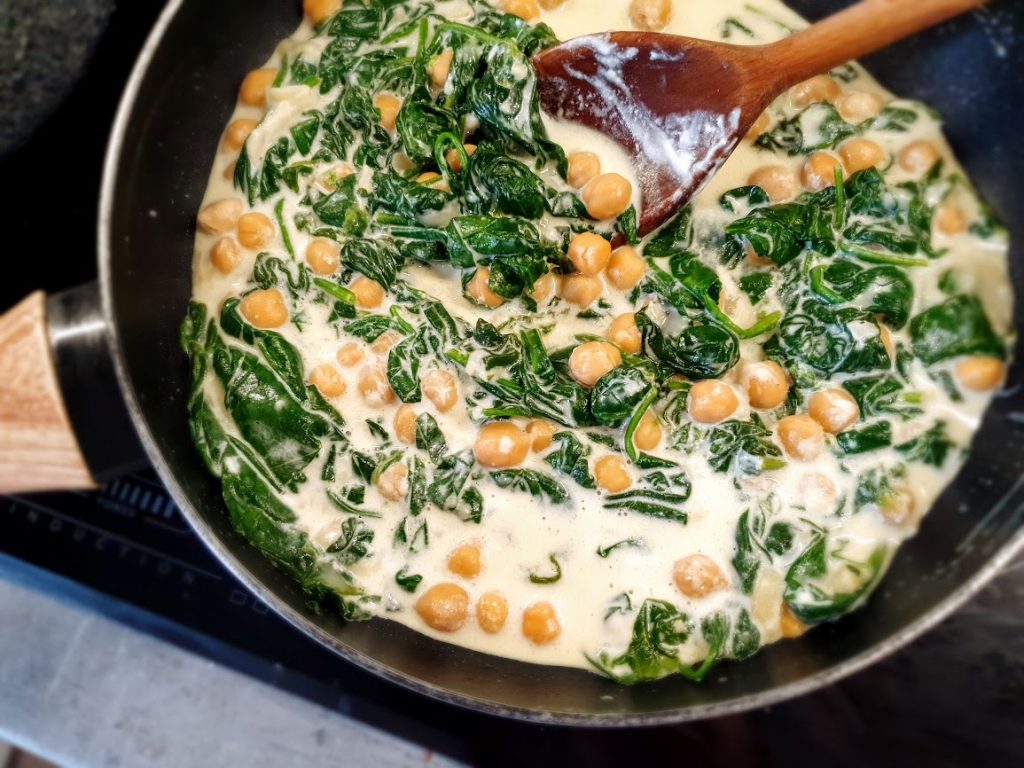 Jeśli chodzi za Wami prosty, ekspresowy i pełnowartościowy obiad, to mam coś dla Was! Ciecierzyca w sosie szpinakowo-serowym to propozycja, która idealnie spełnia powyższe kryteria. Jeśli uwielbiacie szpinak, ser, a do tego ograniczacie, bądź całkowicie zrezygnowaliście z mięsa – koniecznie musicie wypróbować to danie. Serdecznie polecam i zapraszam do przepisu.