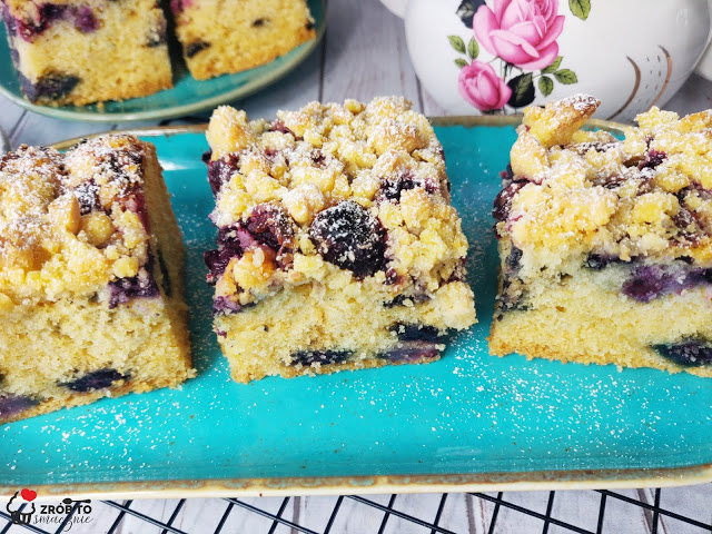 Łatwe ciasto z borówkami, czereśniami i kruszonką to miękkie, delikatne i puszyste…