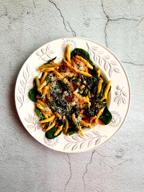 Makaron ze szpinakiem, tuńczykiem i suszonymi pomidorami