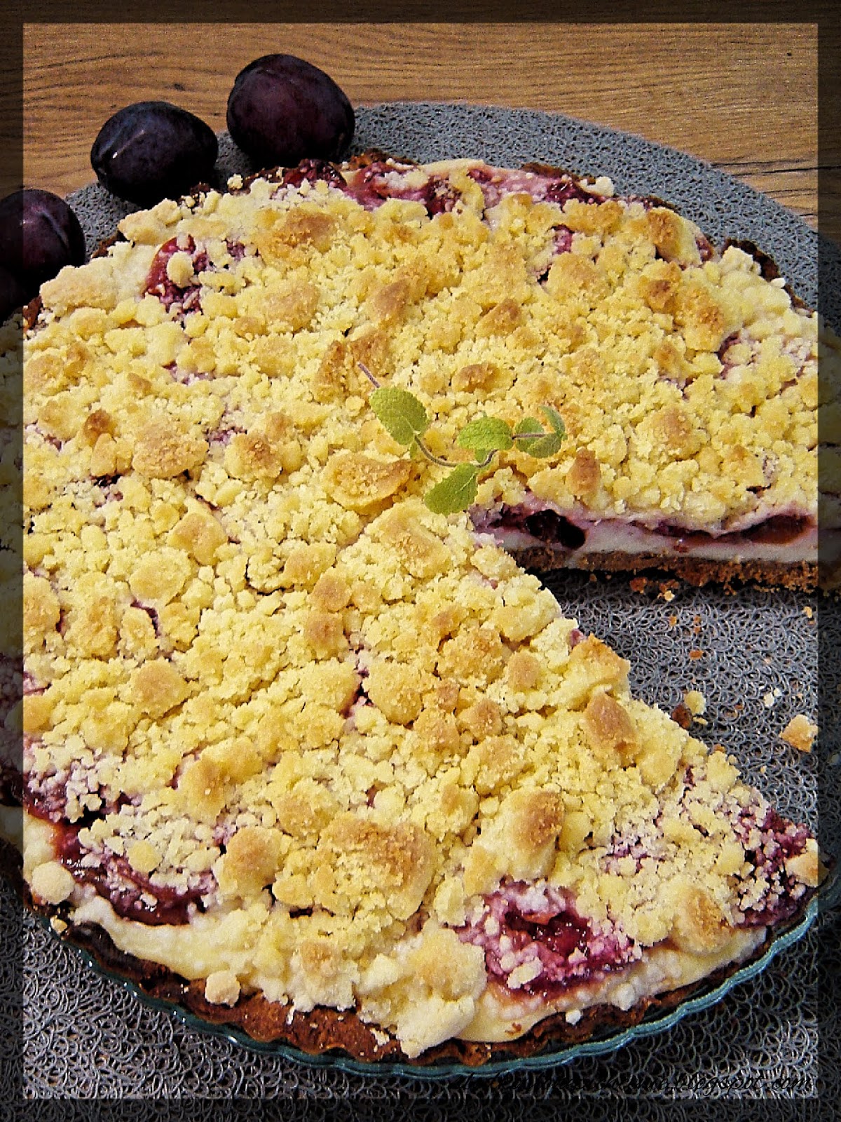 Cudownie pachnąca, krucha i maślana tarta z serem budyniowym, karmelizowanymi śliwkami i…