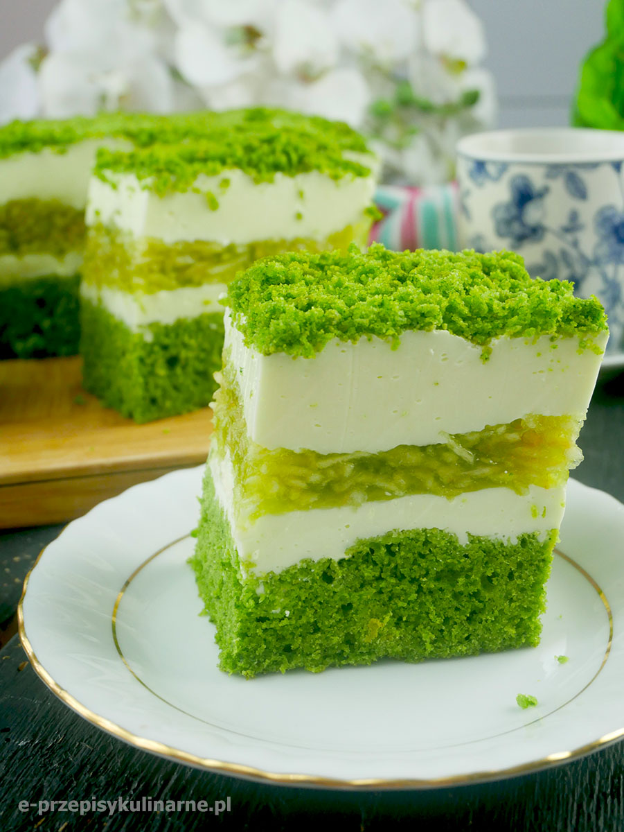 Ciasto Zielone Jabłuszko z lekkim jogurtowym krem i galaretką z jabłkami to…