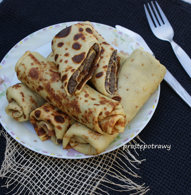 Przygotowanie:Składniki na naleśniki zmiksować na gładką masę,
