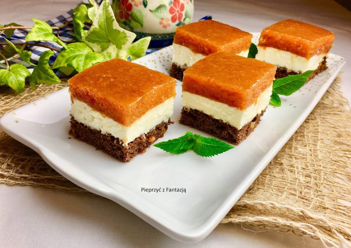 Brownie z kaszy gryczanej z musem truskawkowo-miętowym