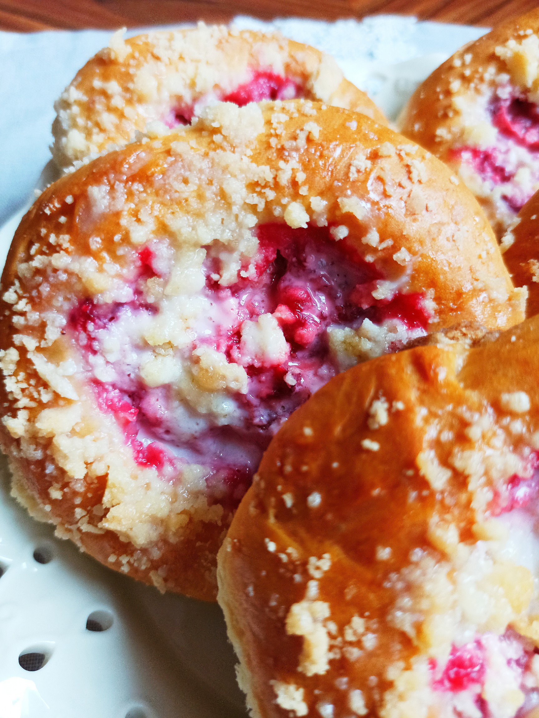 Pyszne, puszyste, wspaniale pachnące i smakujące drożdżówki z truskawkami, kruszonką i lukrem, od których trudno się oderwać.