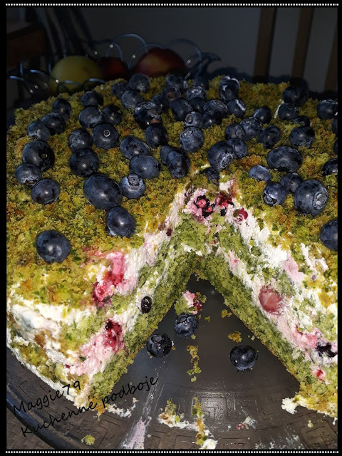 Przepyszne ciasto szpinakowe przełożone lekkim kremem z dodatkiem owoców leśnych- razem tworzy…