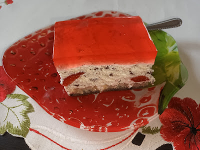 500 g sera białego330 ml śmietanki 30%0,5 szklanki cukru1 łyżka cukru waniliowego250 g margaryny200 ml mleka4 łyżki żelatyny do deserów0,5 łyżeczki aromatu waniliowego w proszkuok. 50 g gorzkiej startej czekoladyok. 300 g truskawekEsencja herbaciana:3 torebki herbaty earl grey200 ml gorącej wody100 ml zimnej wody1 płaska łyżeczka cukruDodatkowo: