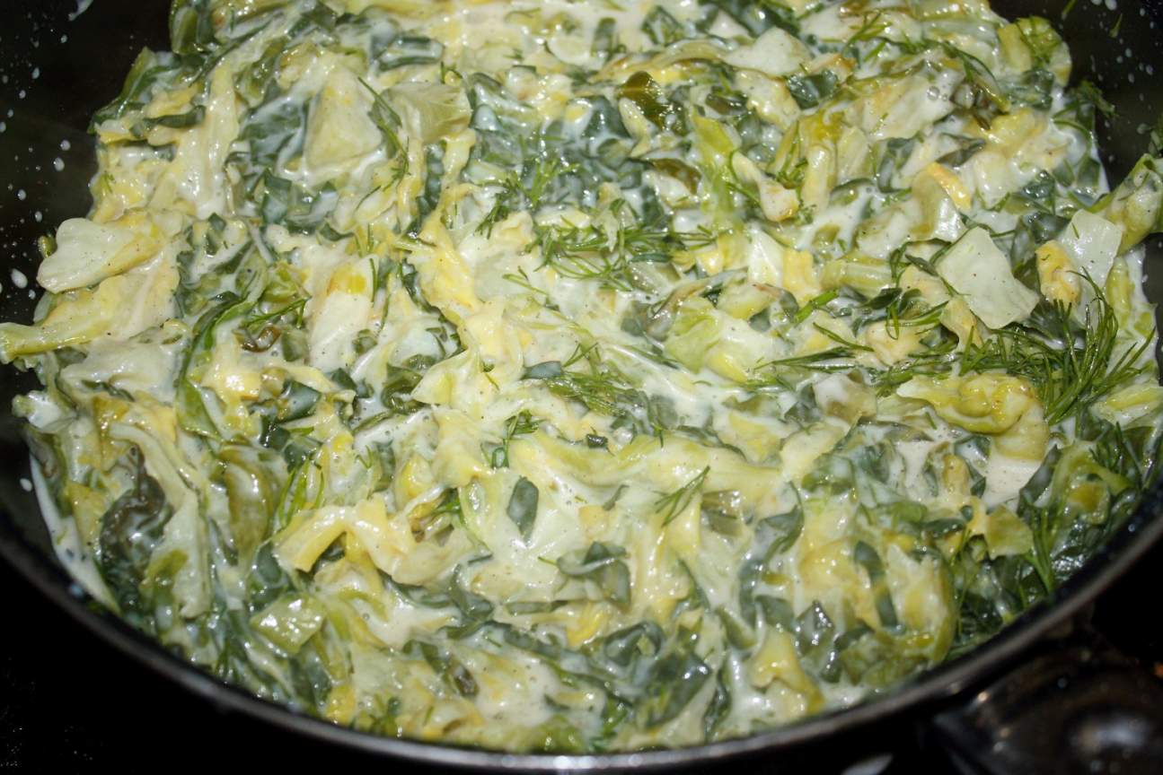 Duszona młoda kapusta z koprem w śmietanie