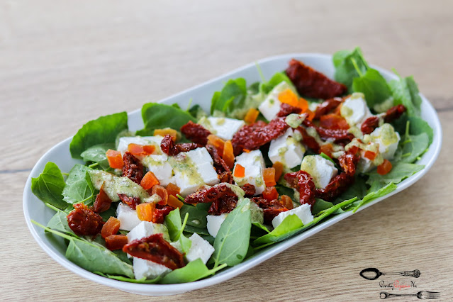 Spróbowałam tej sałatki ostatnio na weselu koleżanki. Była tak pyszna, że większość zjadłam sama 😉 Postanowiłam odtworzyć ją w domu – zmieniłam jedynie sos. Wyszła przepyszna.