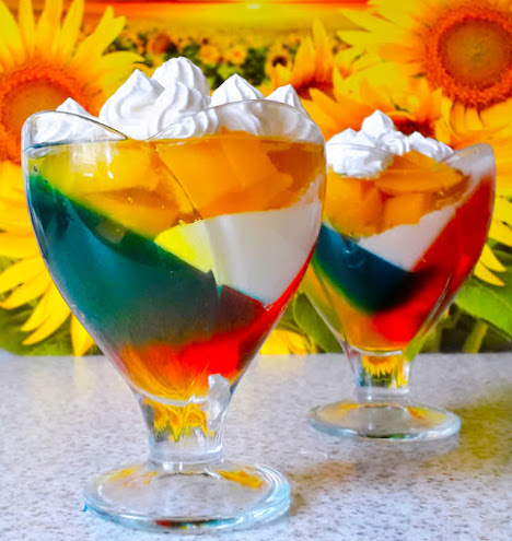 Ten kolorowy deser możemy przygotowywać przez cały rok – świeże brzoskwinie poza sezonem możemy zastąpić owocami z puszki. Dobry pomysł na upalne dni.