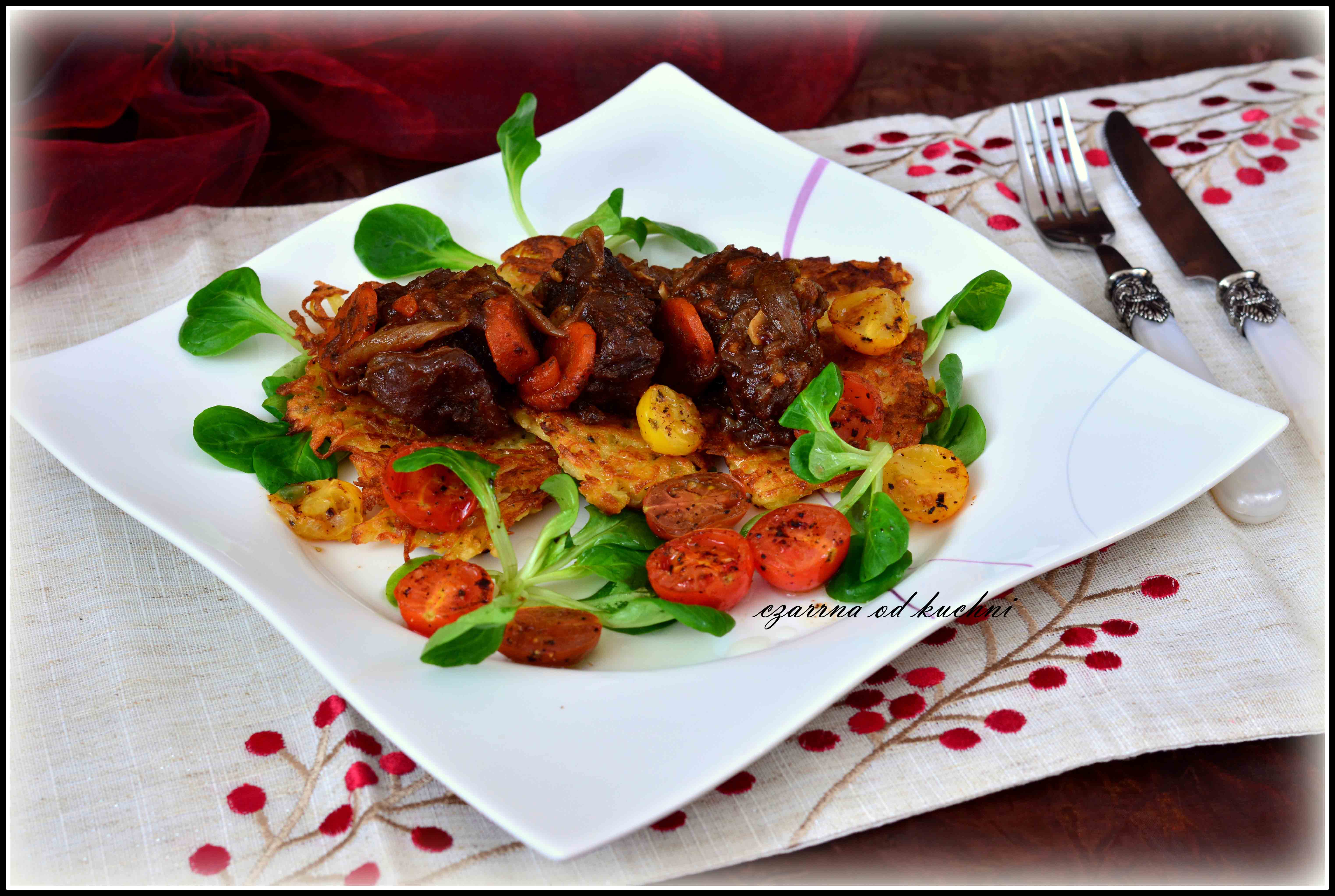 Składniki: 70 dkg policzków wołowych 1 marchewka 4 szalotki 1 szklanka czerwonego…