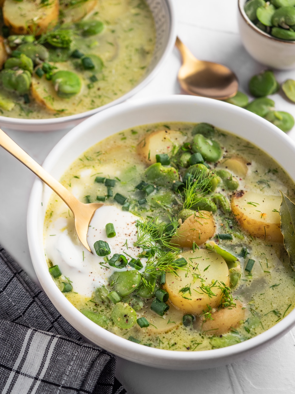 Od czerwca do sierpnia trwa w Polsce sezon na bób. Zawsze staram się ten czas wykorzystać jak najlepiej w kuchni, komponując dania z dodatkiem bobu lub z bobem w roli głównej. Tym razem powstała zupa z bobem i ziemniakami, która w smaku jest klasyczna, ale zarazem wyjątkowa!
