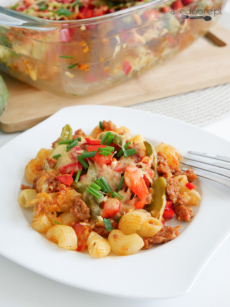 Zapiekanka obiadowa na ostro to bardzo ciekawa i wyrazista w smaku zapiekanka, która będzie idealnym pomysłem na rodzinny obiad. Składa się z kilku prostych składników, które nadają jej ciekawego smaku i sytości. W skład zapiekanki wchodzi makaron, mięso mielone, papryka, cebulka
