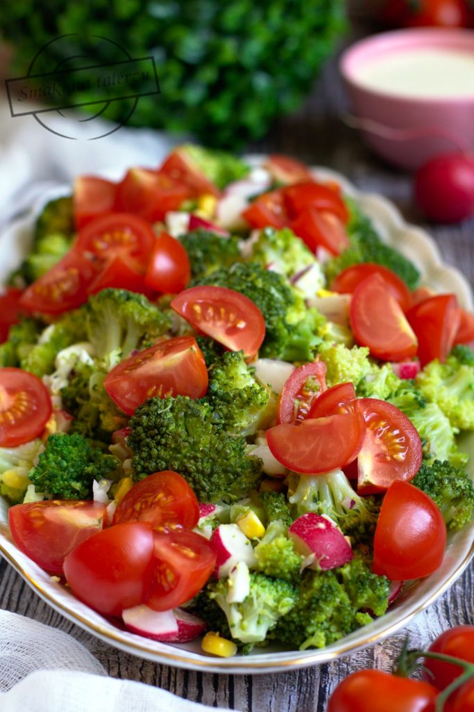 Sałatka z brokułami, jajkiem i pomidorkami koktajlowymi. Patrząc na sałatki zamieszczone na…