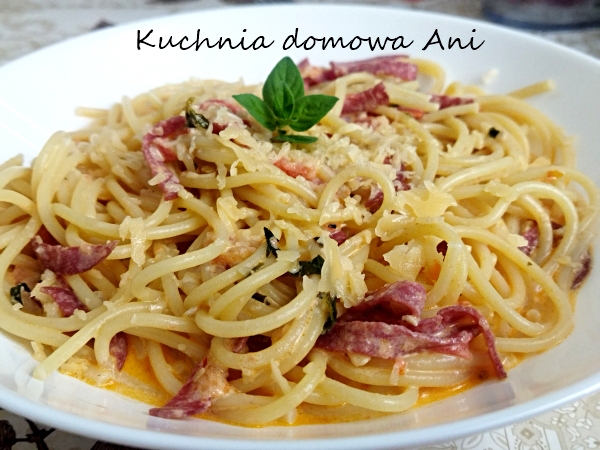 Pyszne spaghetti przygotowane ze składników znalezionych w lodówce. Wyszło naprawdę pysznie!