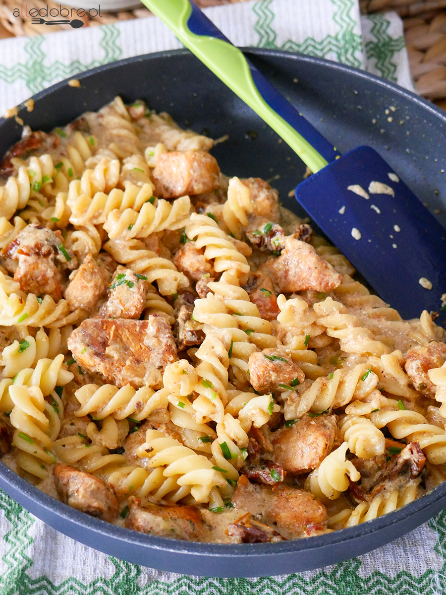 Makaron z kurczakiem i suszonymi pomidorami to świetne danie obiadowe. Idealne dla…